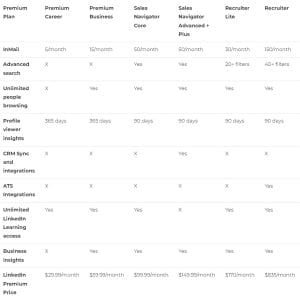 Before that, here’s a quick comparison table for a sneak peek into every LinkedIn Premium account: